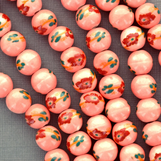 12mm CORAL FLOWER Round Ceramic Porcelain Beads . bgl0781