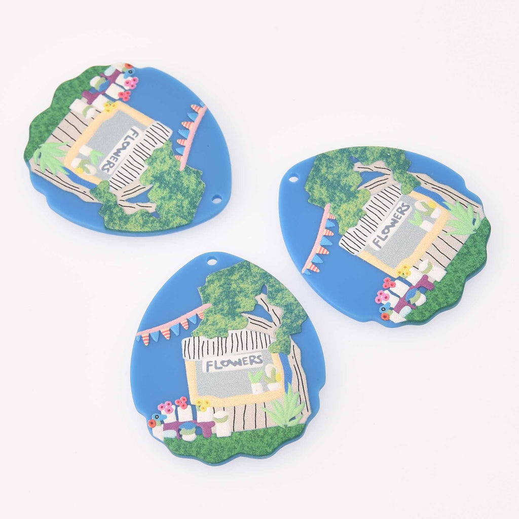 2 Flower Garden Charms, Acrylic, 44mm, chs7860