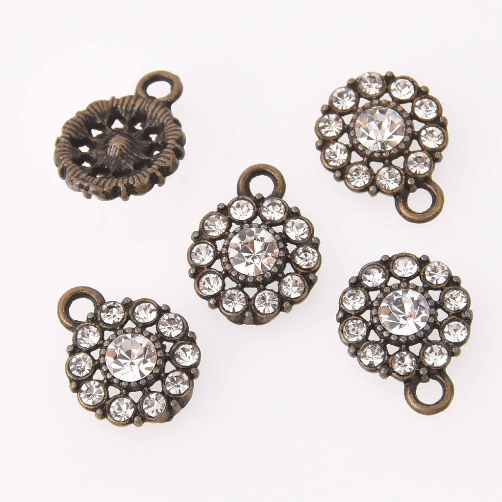 4 Bronze Crystal Charms, 12mm round Rhinestone charms, chs7773