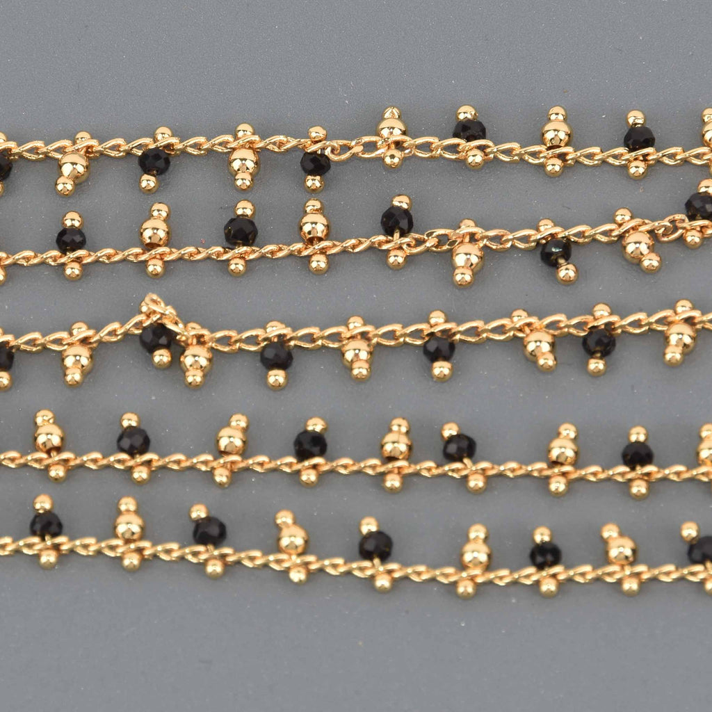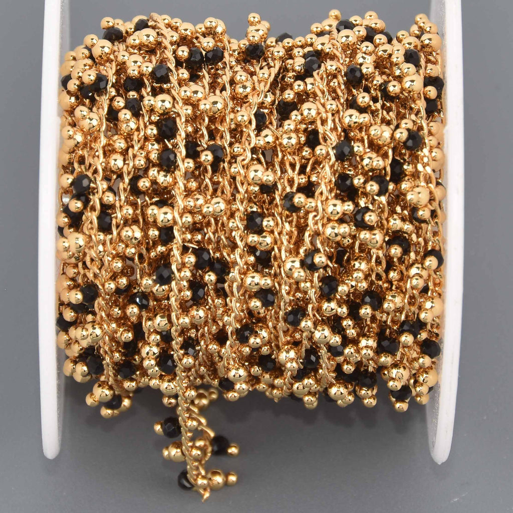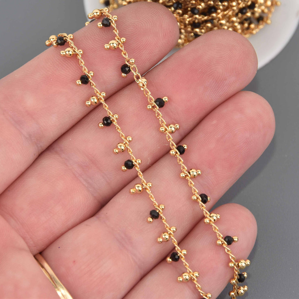 1 yard 2.5mm Black Crystal Gemstone Shaker Chain, gold wire loops, Bead Charm Dangles fch1328a