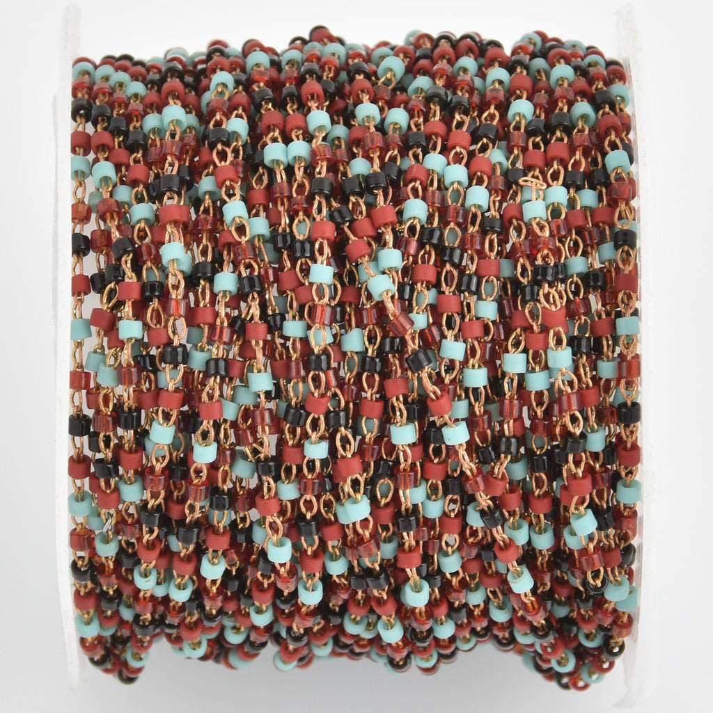1 yard 2mm Seed Bead Chain, Glass Copper Blue Red Black, fch1124a