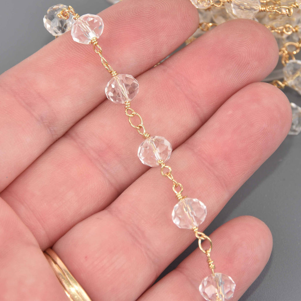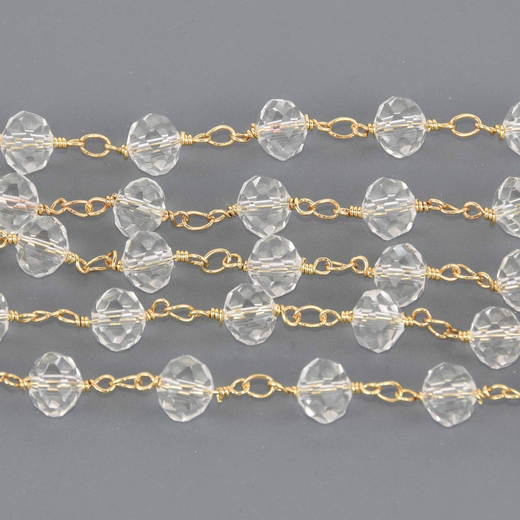 Crystal glass rosary chain with 8mm beads. Each crystal is hand-looped with sturdy wire.