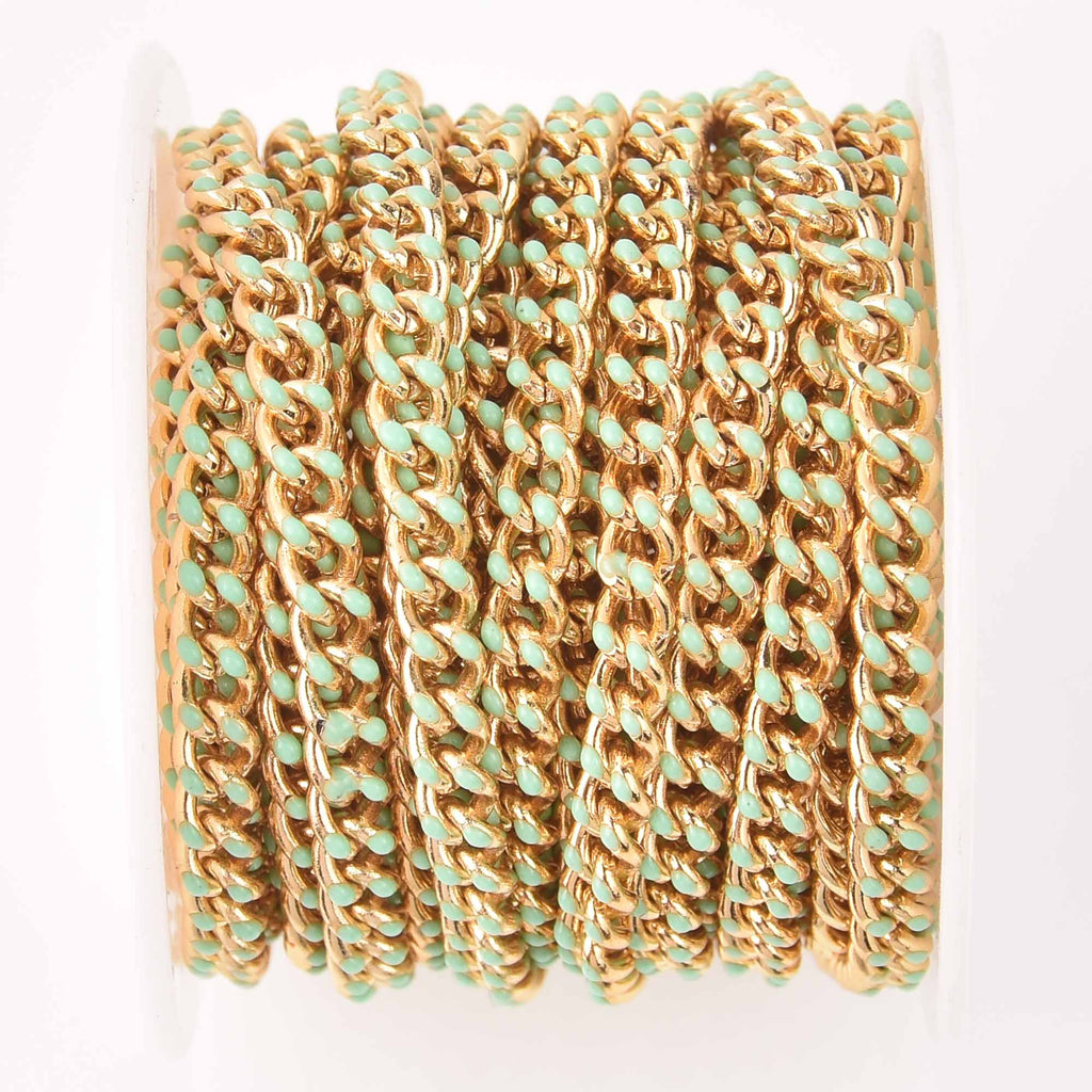 1 yard Green Chain, Enamel Coated and Gold Plated, Curb Link, 6mm links, fch1284a