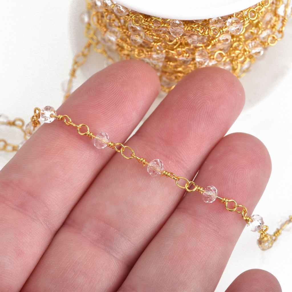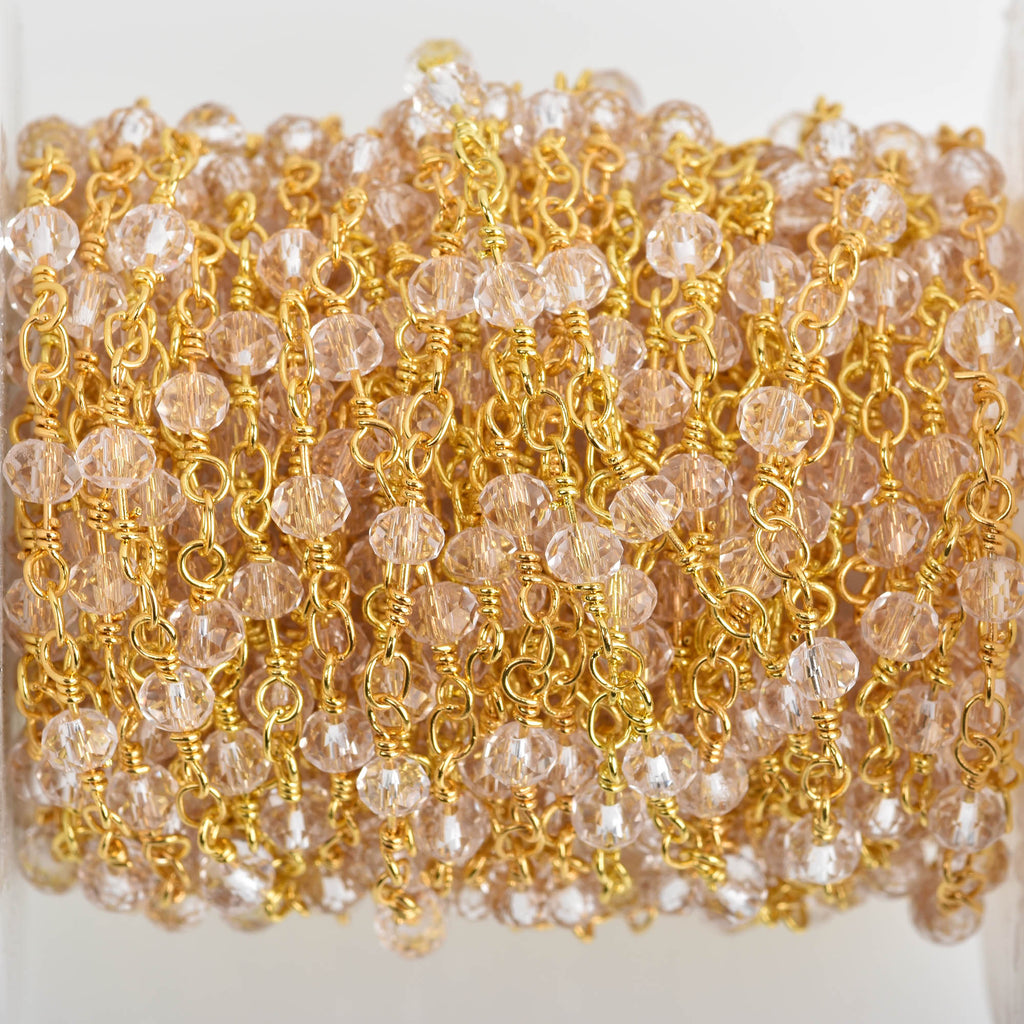 Crystal glass rosary chain with 4mm beads. Each crystal is hand-looped with sturdy wire, double wrapped so your chain won't come apart.