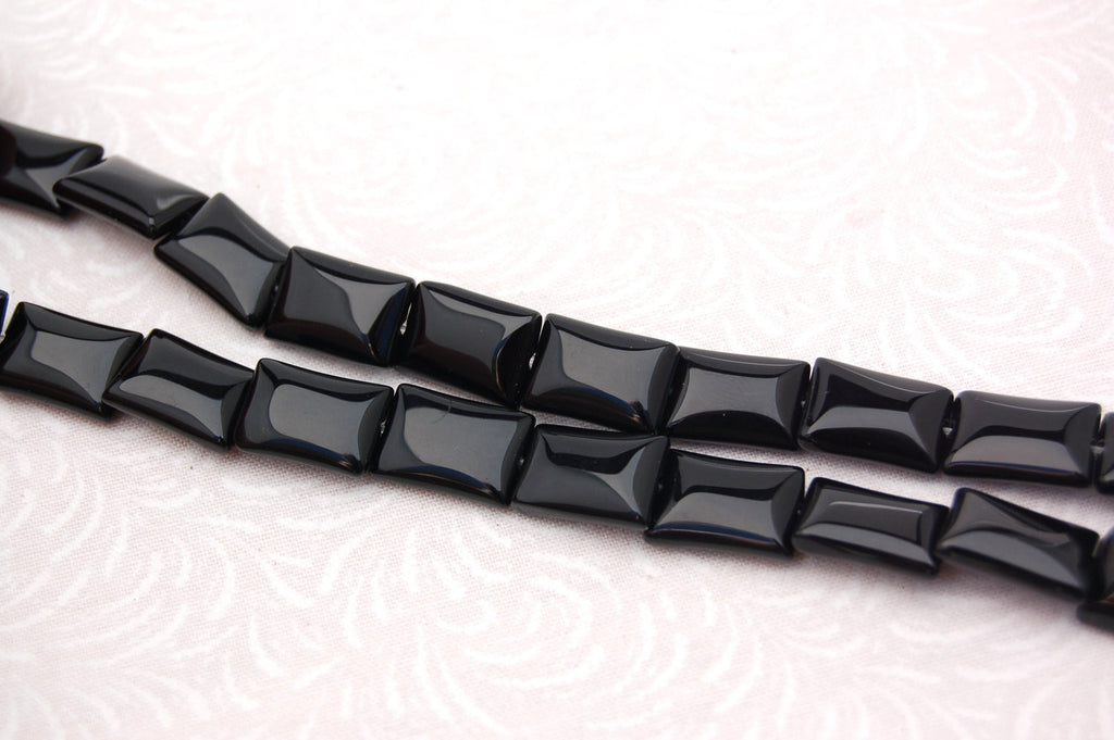 1 Strand 15.5" BLACK ONYX Puffed Pillow Rectangle Shaped Beads 18x14mm Natural Gemstones gon0011