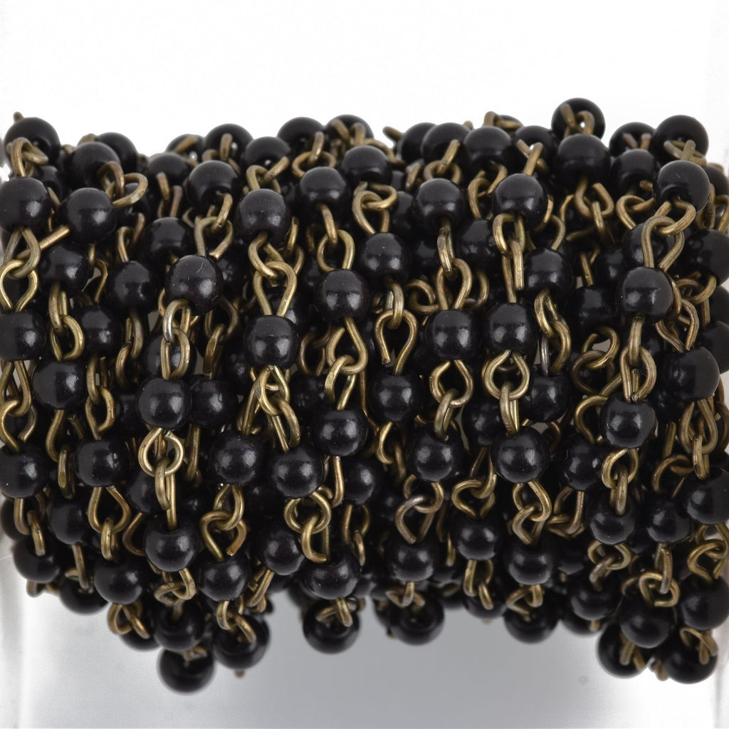 Black howlite rosary chain with 4mm stone beads. Each bead is hand-looped with sturdy wire.