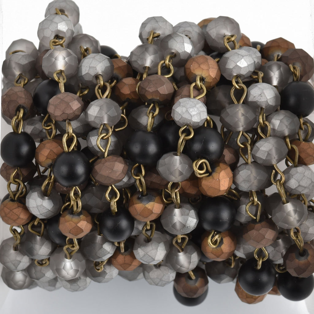 1 yard (3 ft) Matte Crystal Gemstone Rosary Chain, Bronze, 6mm, silver, gray, bronze, black howlite, fch0778a