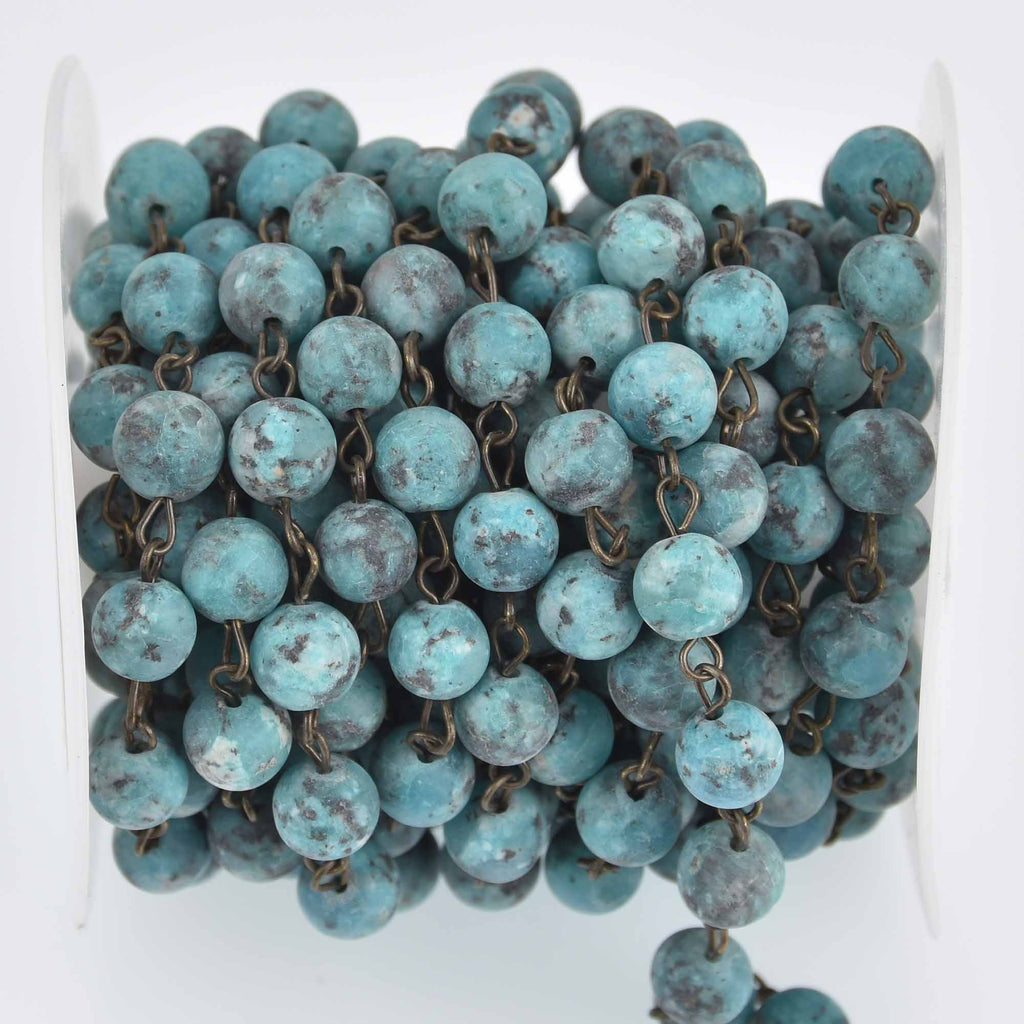 1 yard 8mm Matte Blue Agate Gemstone Rosary Chain, bronze, round gemstone beads, fch1251a