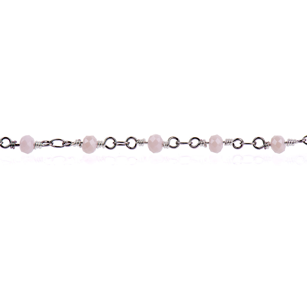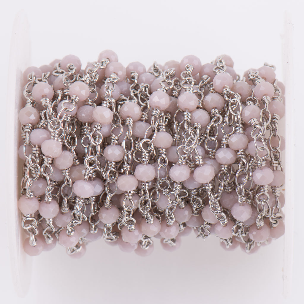 1 yard BLUSH Crystal Rosary Bead Chain, silver double wrapped wire, 4mm faceted rondelle glass beads, fch0631a