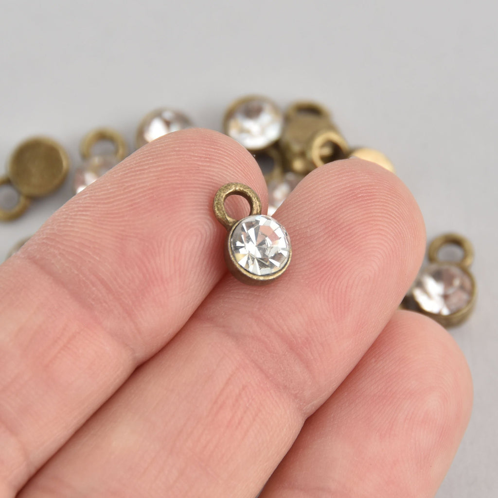 10 Bronze Rhinestone Drop Charms, CLEAR Crystal in Center, 7mm, chs6901