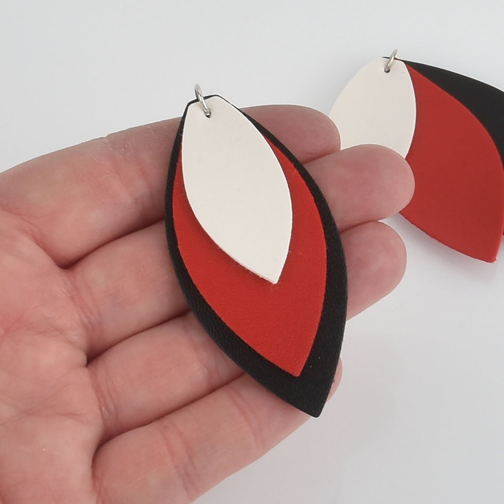 These large faux leather teardrops are great for a backdrop for a long charm or pendant.