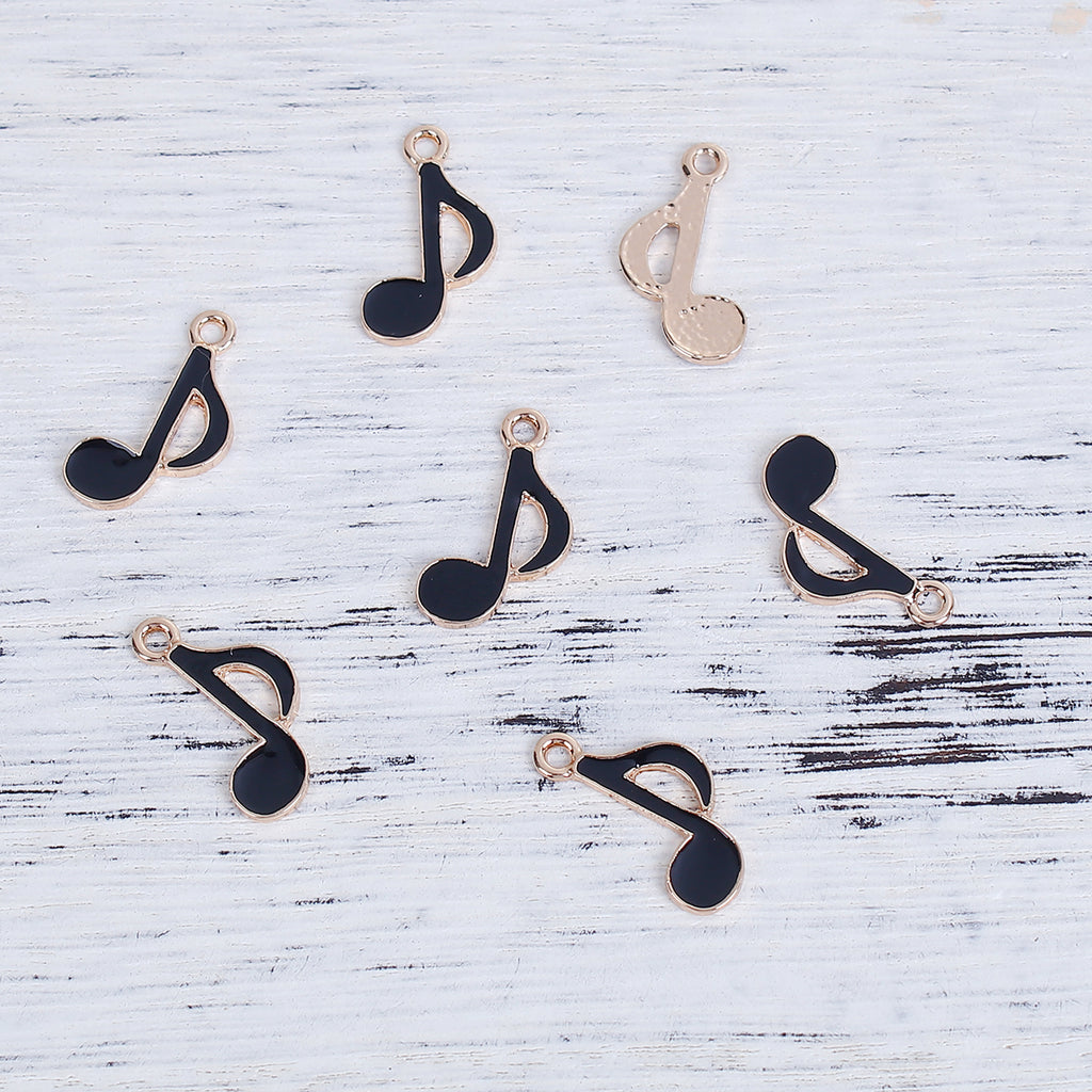 10 Gold MUSIC NOTE Charms with black enamel, 20x10mm, chs3414