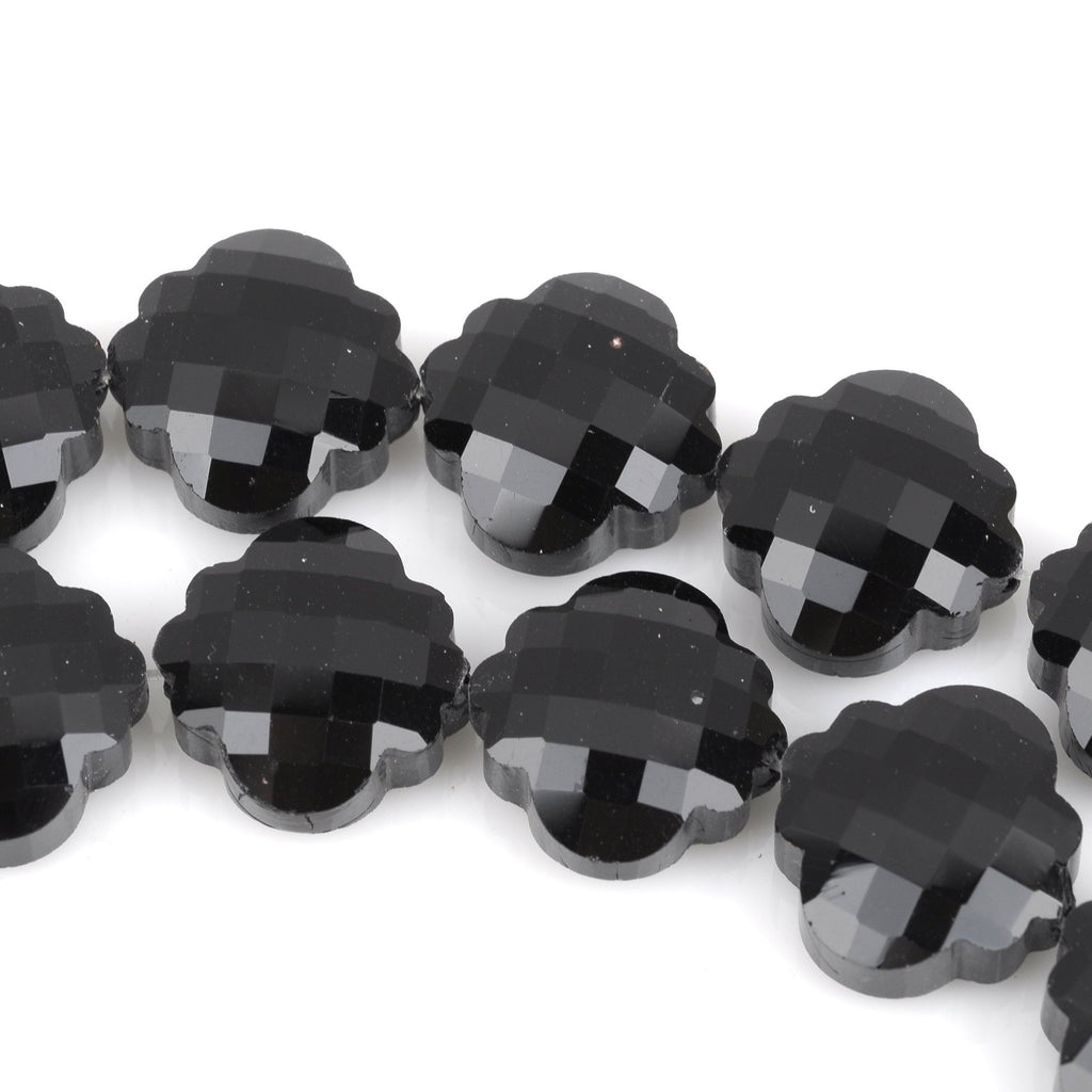 10 JET BLACK QUATREFOIL Crystal Glass Beads, checkerboard faceted, 20mm, bgl1351