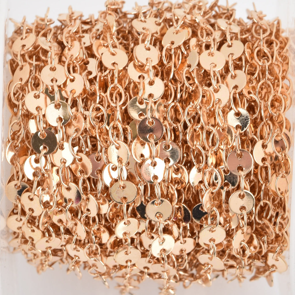 10 meters of GOLD DISC Chain, Sequin Chain, Curb Link Chain, brass chain, 4mm round flat discs, 32.8 feet, fch0789b