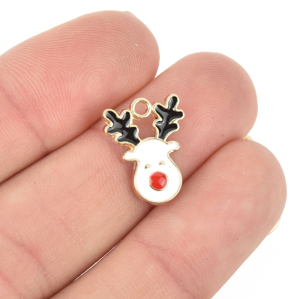 10 REINDEER Christmas Charms Gold Plated with enamel chs5120