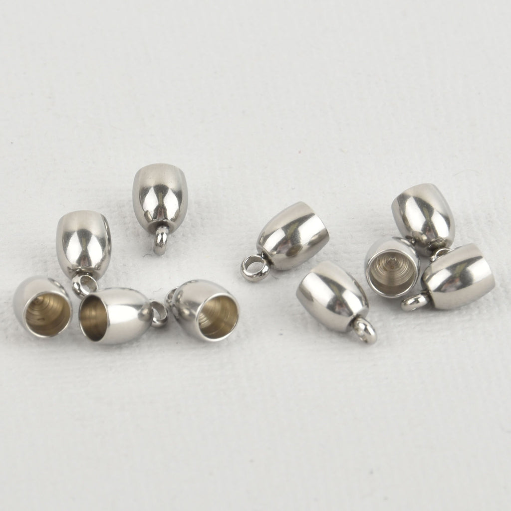10 Silver Tassel Bead Caps, Leather Cord Ends with Bail Fits up to 4mm cord, stainless steel, fin1014