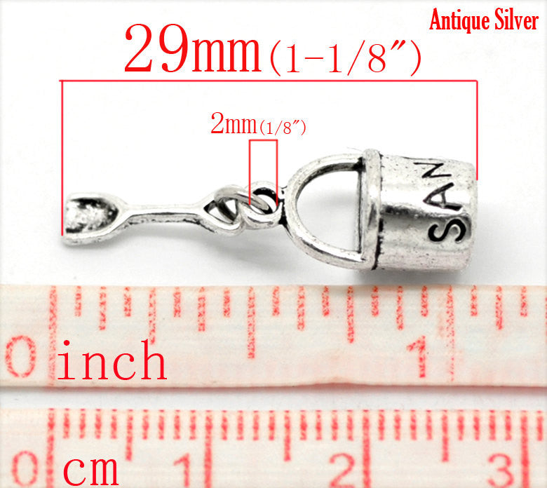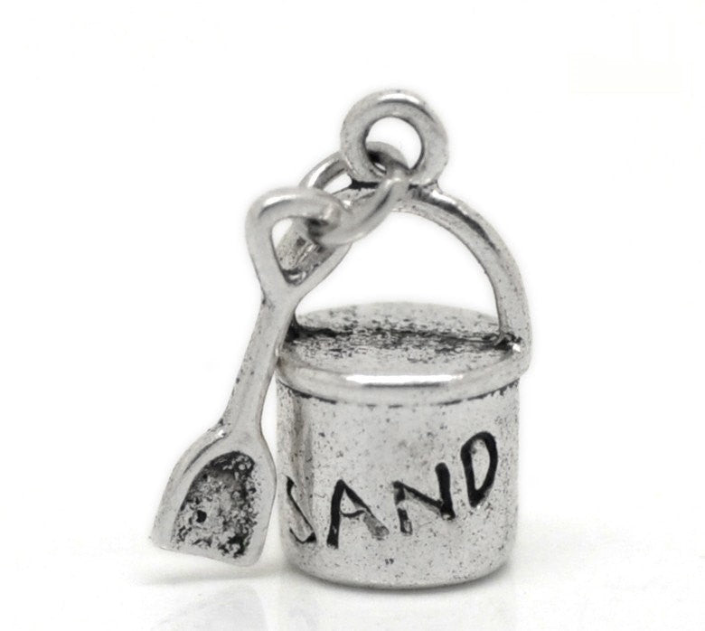 10 Silver Tone Metal Moveable BEACH SAND Pail Charm Pendants chs0036