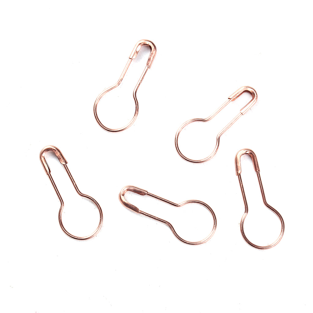 Petite copper metal safety pins with a rounded part on the end, perfect to hold all your stitch marker collections together. Add beads or charms to embellish. Elegant addition to your knitting or crochet projects.