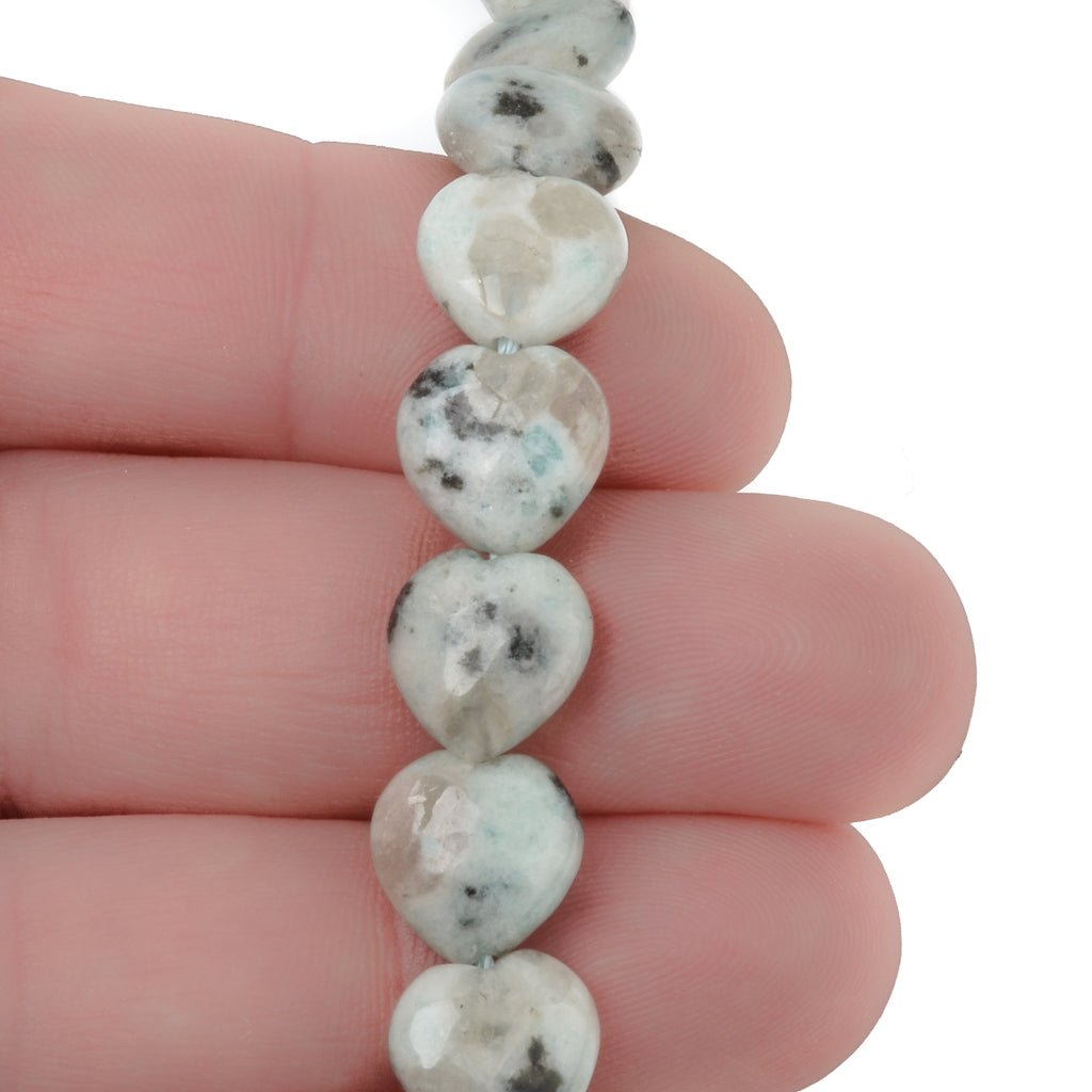 Beautiful agate details in this stone. Black speckles accent the lovely light blue green color.