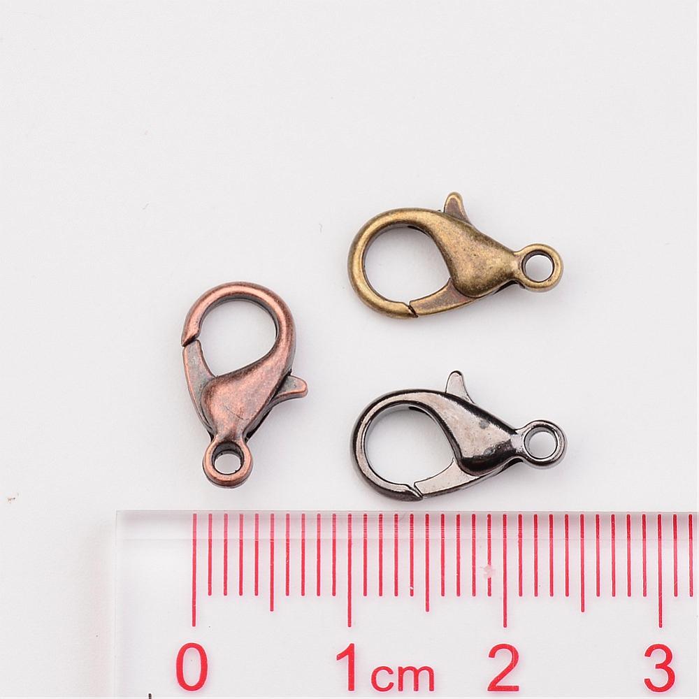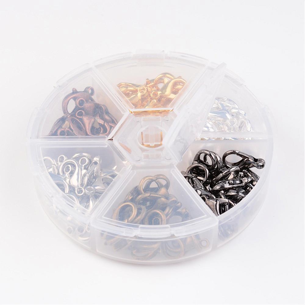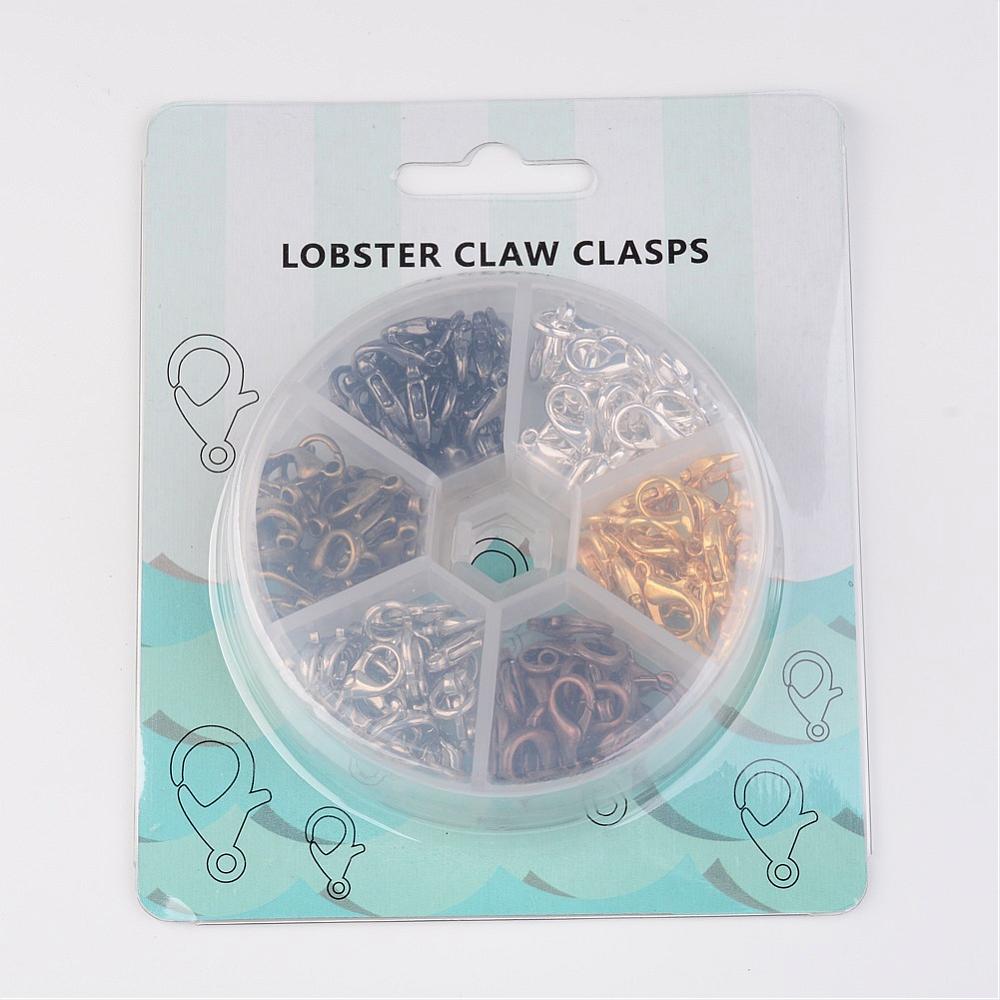 10mm Lobster Clasps, Mixed Metal Colors, Brass Copper Gunmetal Bronze Bright Silver & Silver Tone in Round Storage Box, 240 clasps, fcl0253