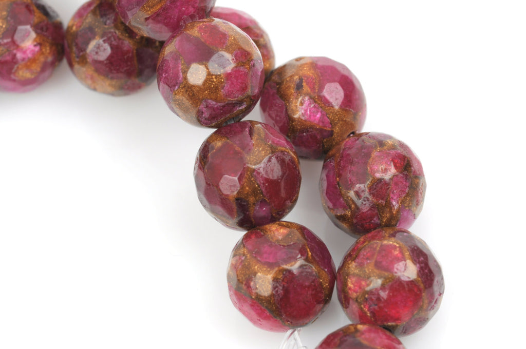 Gorgeous ruby red and golden quartz round faceted beads! Lots of sparkly gold matrix marbled throughout each bead.
