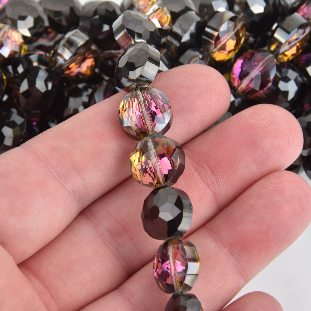 12mm BLACK VITRAIL Round Coin Crystal Beads, Faceted Glass, strand, 20 beads, bgl1845