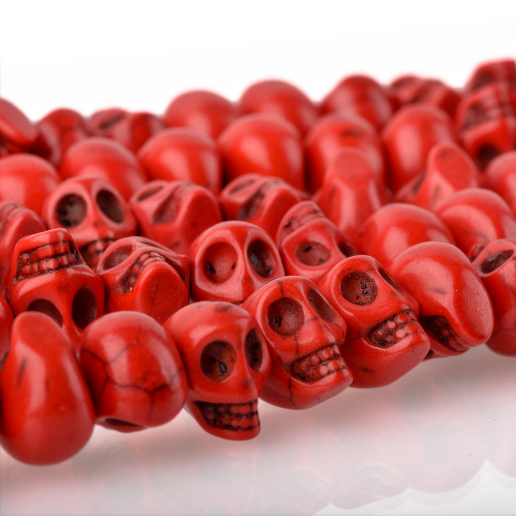 12mm RED Howlite Skull Beads, Drilled Sideways, full strand, about 40 beads, how0676