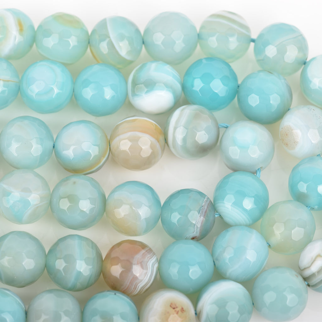 12mm Round Agate Beads, Robin's Egg BLUE Faceted Turquoise Blue AGATE Beads, Natural Gemstones, full strand, 32 beads, gag0363