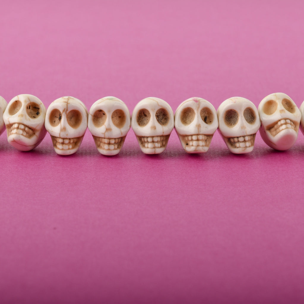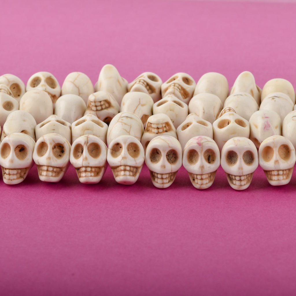 12mm WHITE Howlite Skull Beads, Drilled Sideways, full strand, about 40 beads, how0670