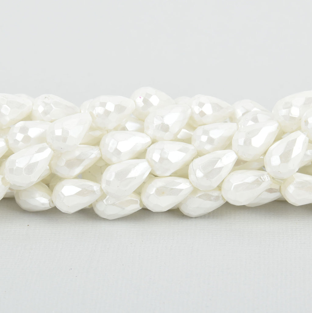 12mm White Pearl Teardrop Crystal Beads, Faceted Opaque Glass 30 beads bgl1825