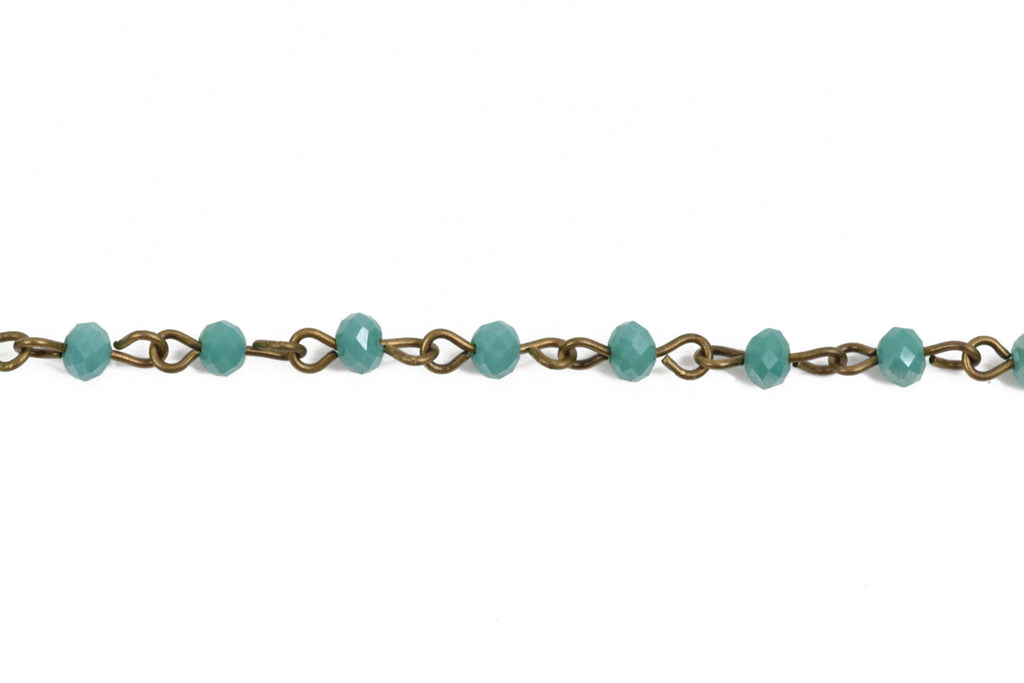 Turquoise crystal rosary chain with 4mm crystals. Each crystal is hand-looped with sturdy bronze wire.
