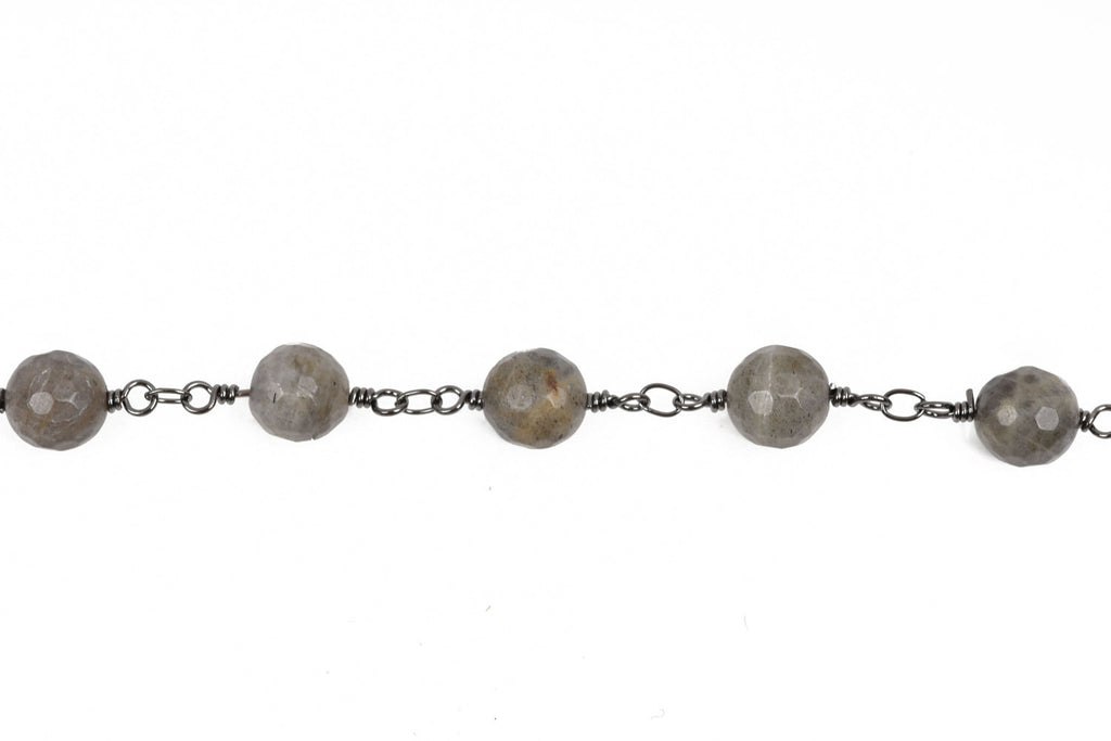 13 ft. (4.33 yards or 4 meters) spool of natural gemstone LABRADORITE rosary chain with 8mm beads. Each FACETED stone is hand-looped with sturdy gunmetal wire.