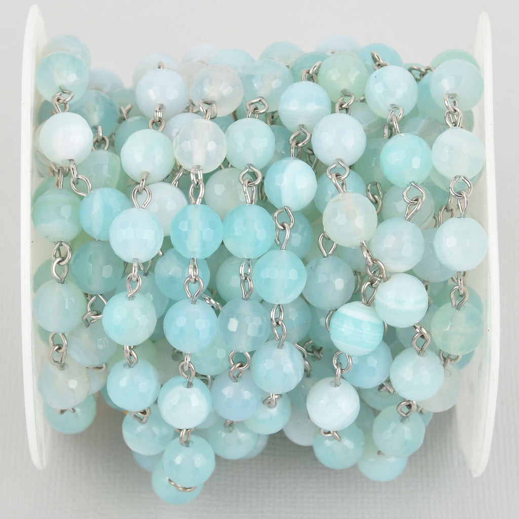 13 feet 8mm Robins Egg BLUE AGATE Rosary Chain, silver wire, fch1084b