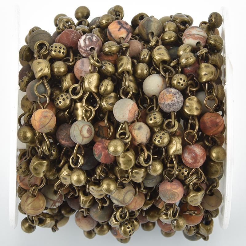Color: bronze wire, bronze charms, Matte Picasso Jasper gemstone beads