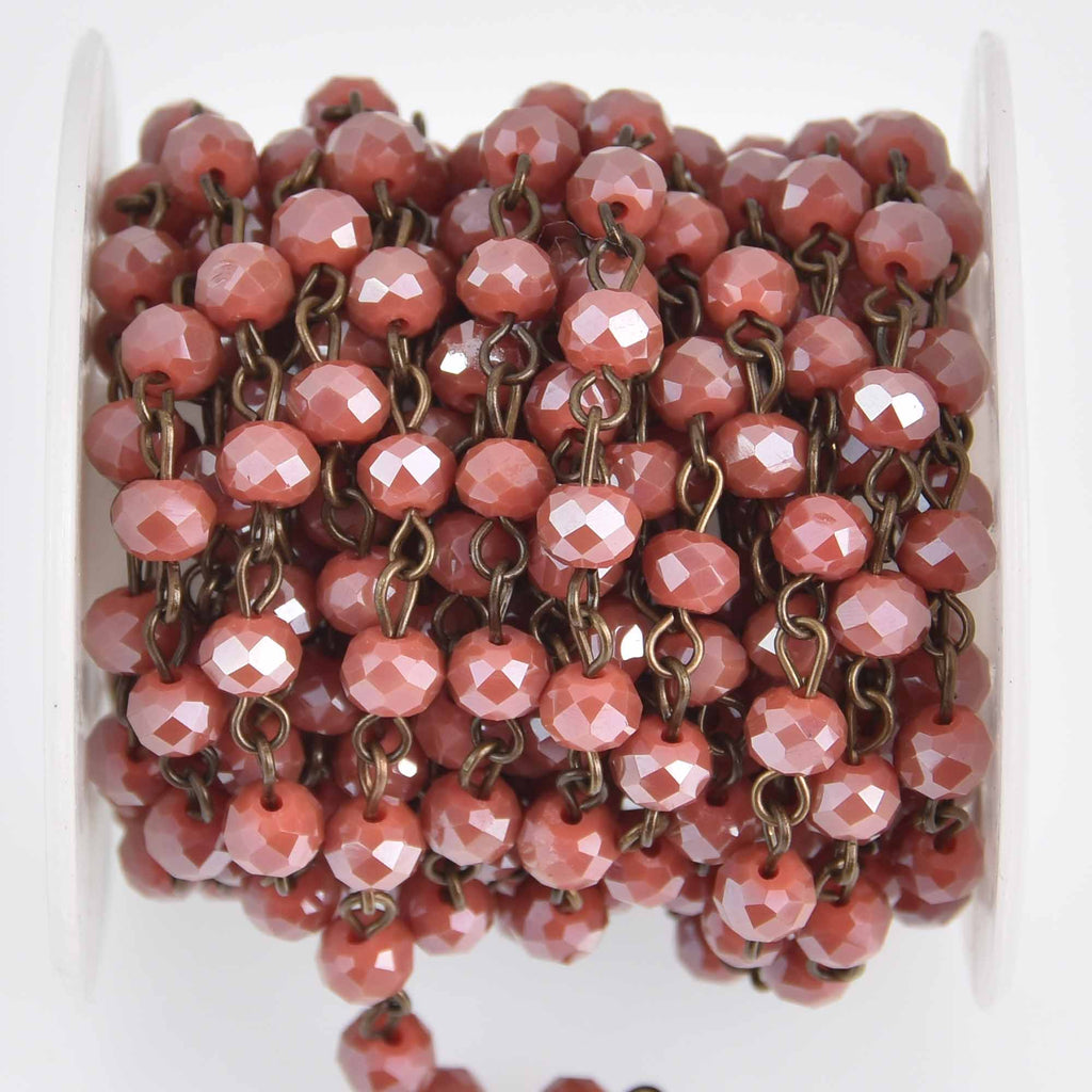 Crystal glass rosary chain with 6mm beads. Each crystal is hand-looped with sturdy wire.