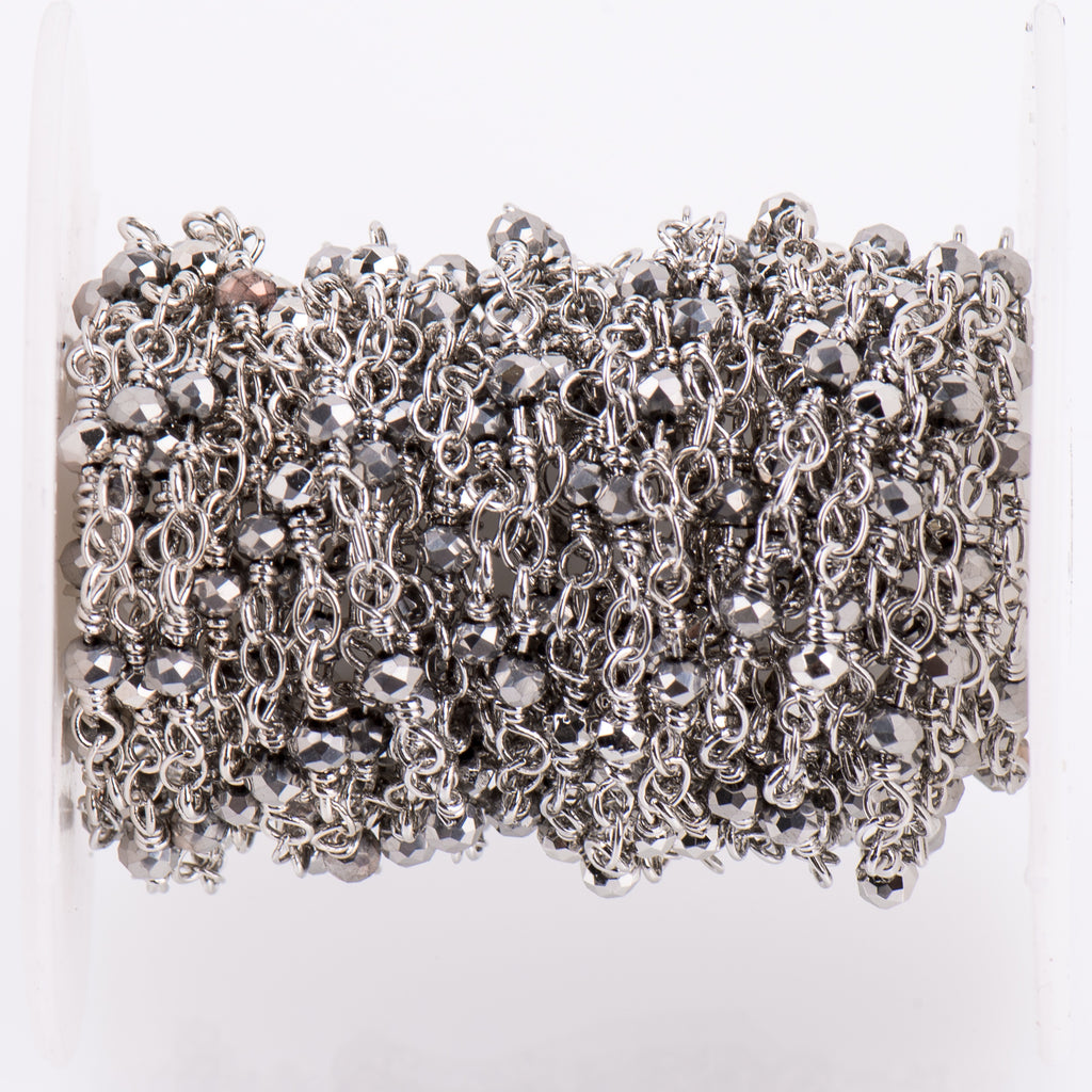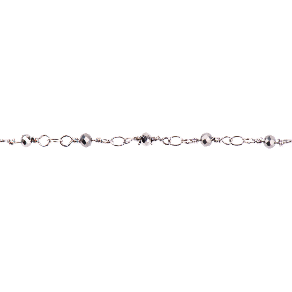 16ft METALLIC SILVER Crystal Chain, Rondelle Rosary Bead Chain, silver double wrapped wire, 3mm faceted glass beads fch0717b