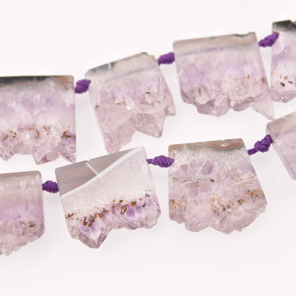 Each bead has gorgeous druzy details and a raw edge with exposed crystal points.