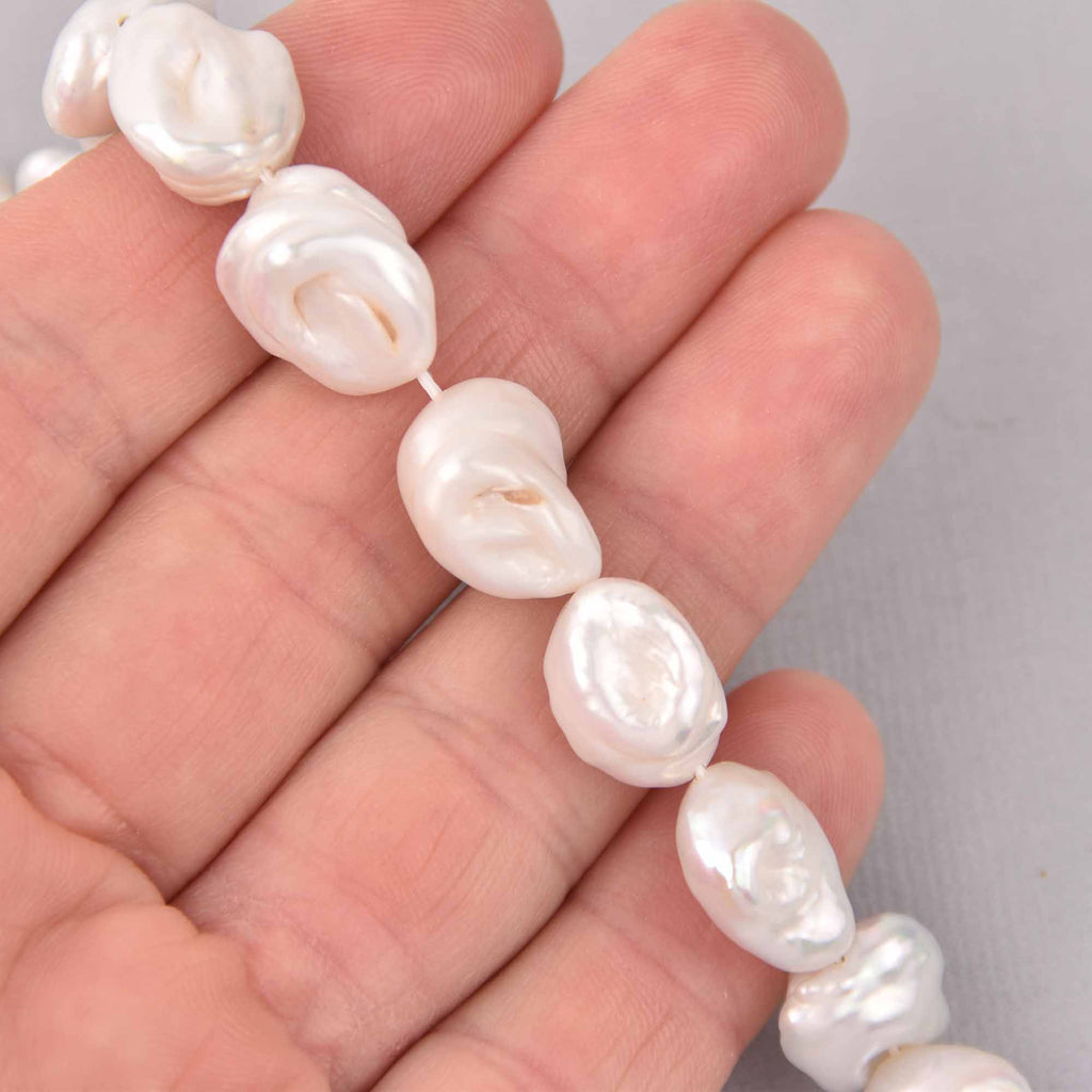 2 Large White Cultured Pearl Beads, 13mm to 16mm, gem0735