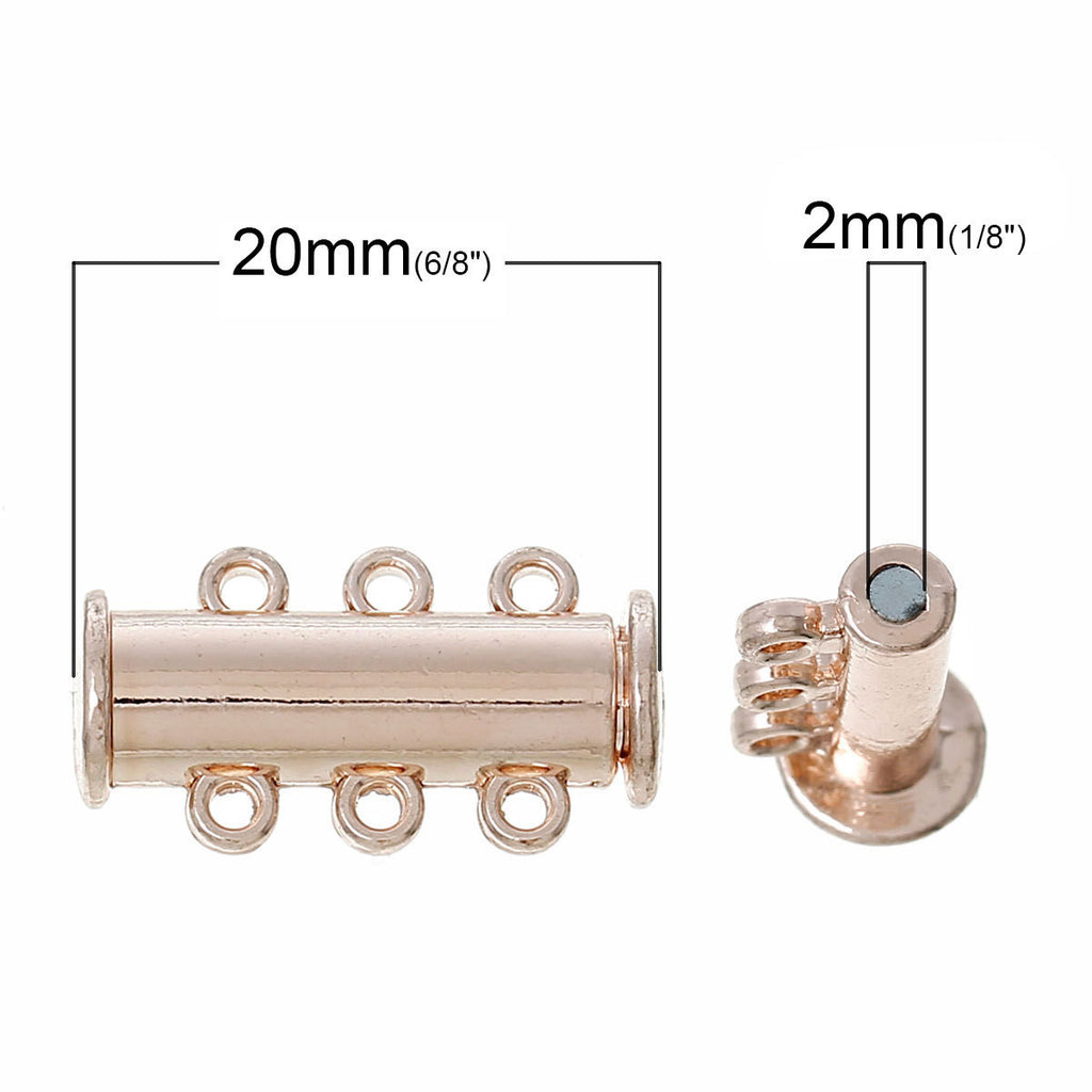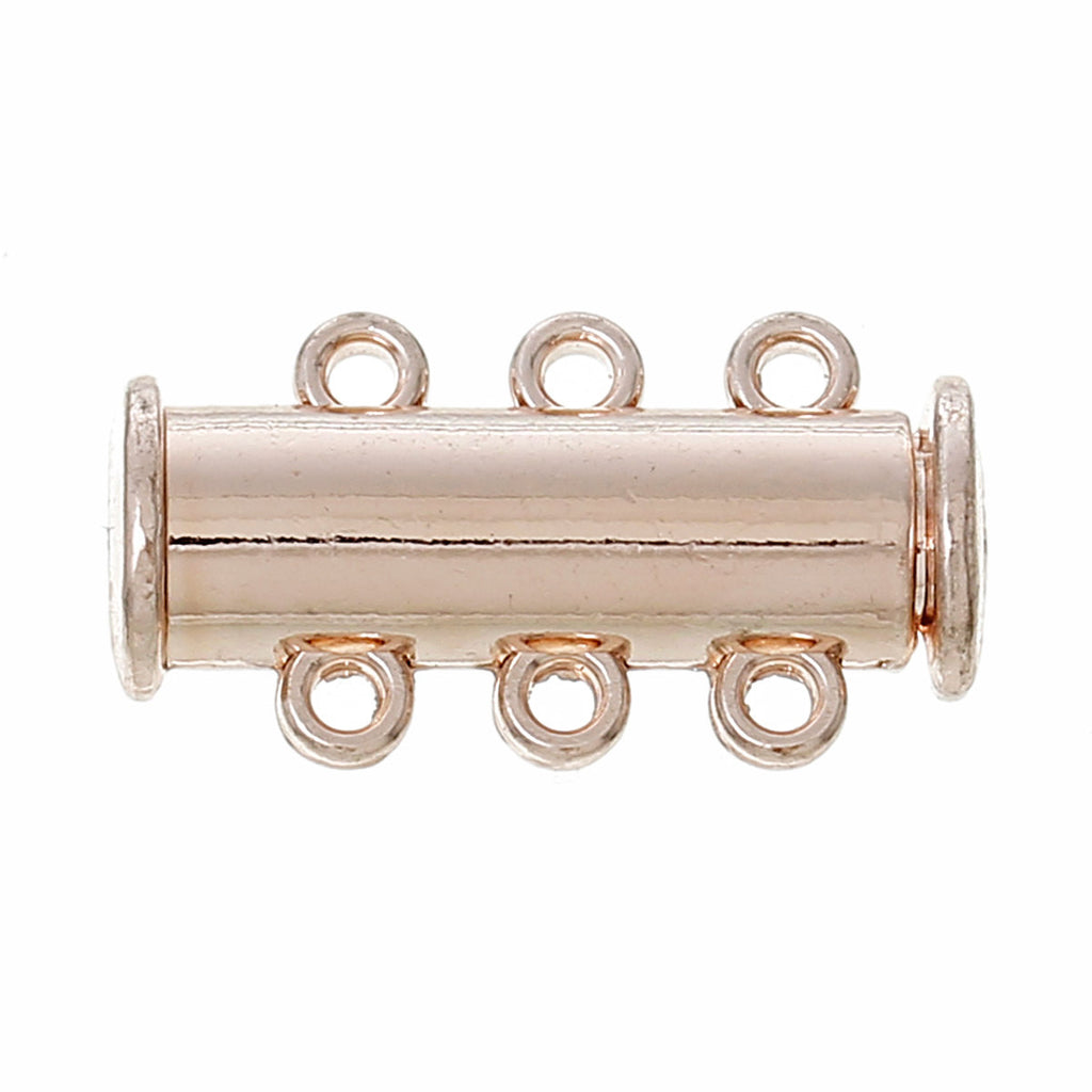 Magnetic Slide Lock Clasps, Brass Clasps, rose gold color, 3-Strand and 6-Holes