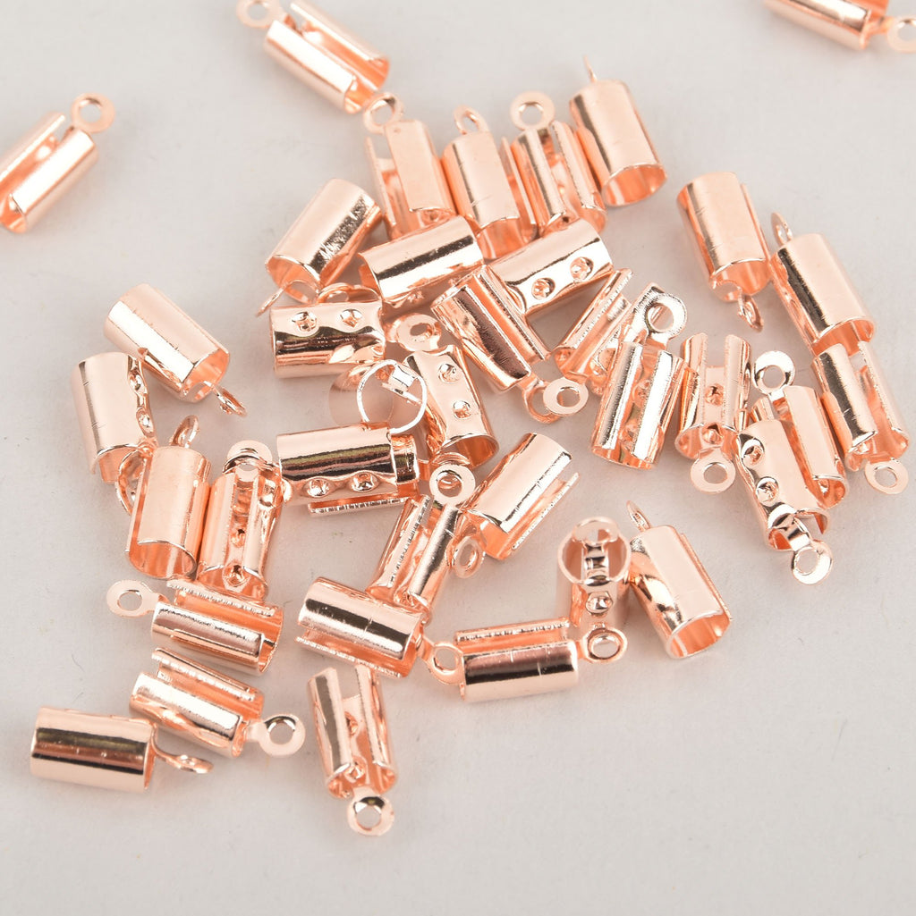 Smooth rose gold-plated copper end caps for Kumihimo braided jewelry, rat tail satin cord, or leather cord up to 4mm.