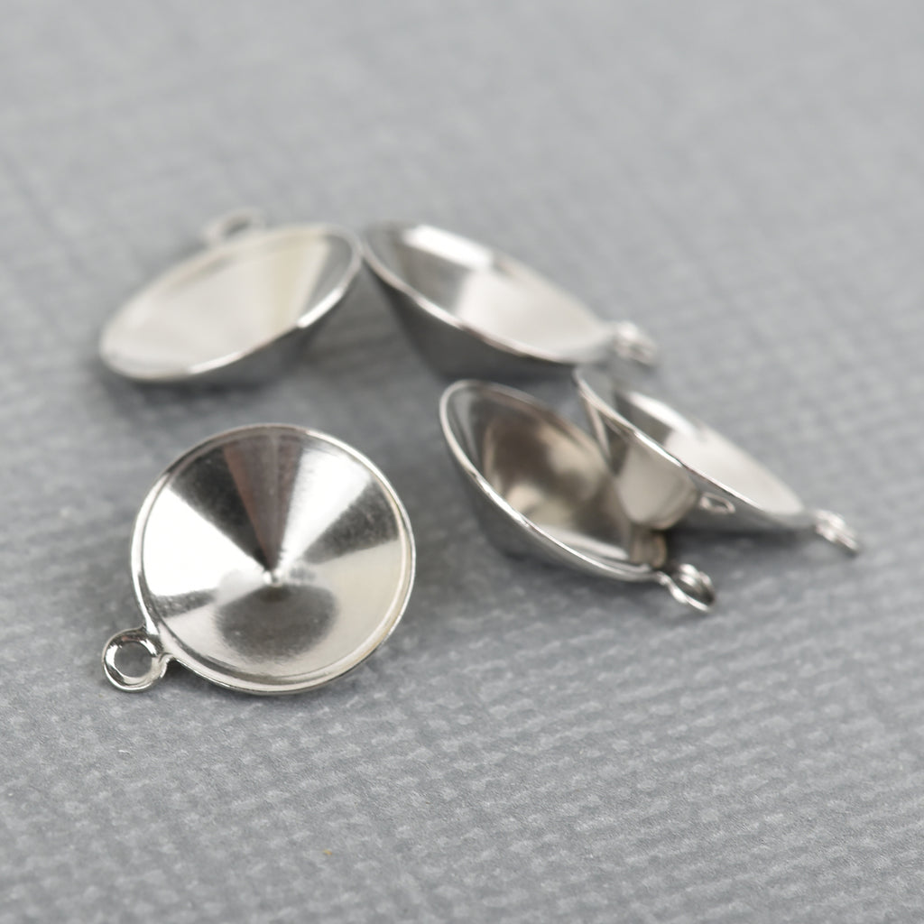 Bezel fits ss37, ss38 pointed back rhinestone (8mm) with a loop at the top for a charm.