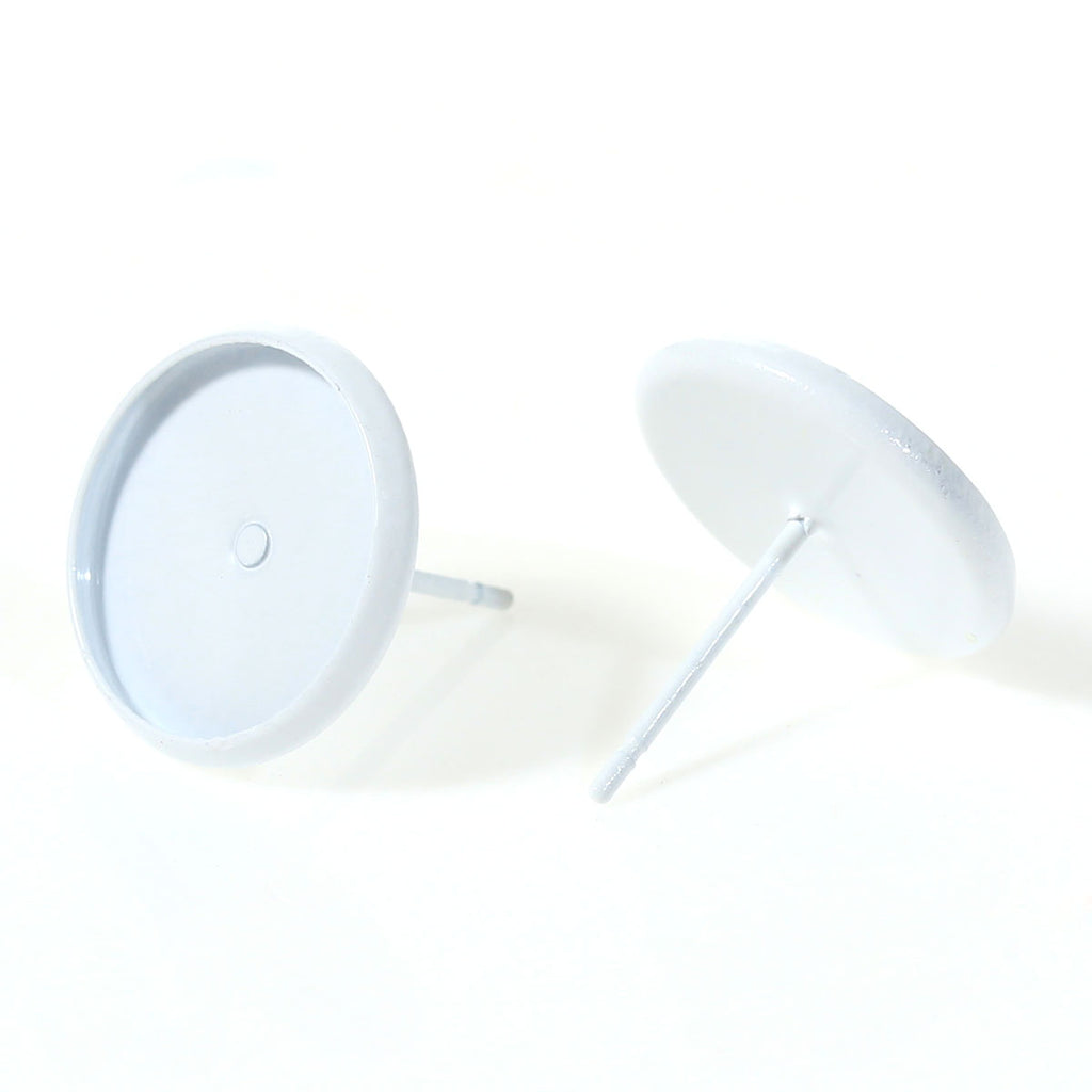 20 White Post Earring Blanks, cabochon bezel setting POST back earrings, fits 12mm round inside tray fin0721