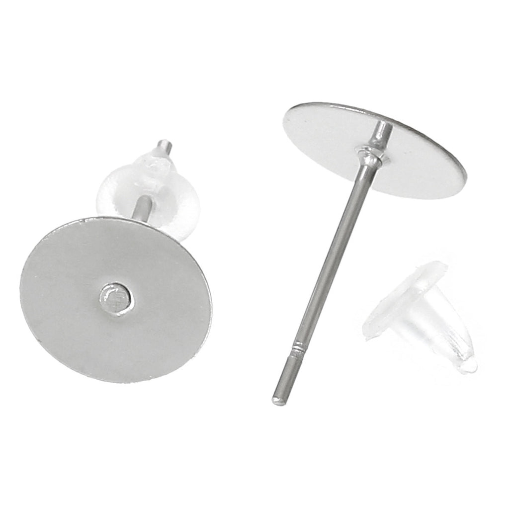 Hypoallergenic stainless steel earring posts for your jewelry designs. Includes the rubber stopper backers for each earring.