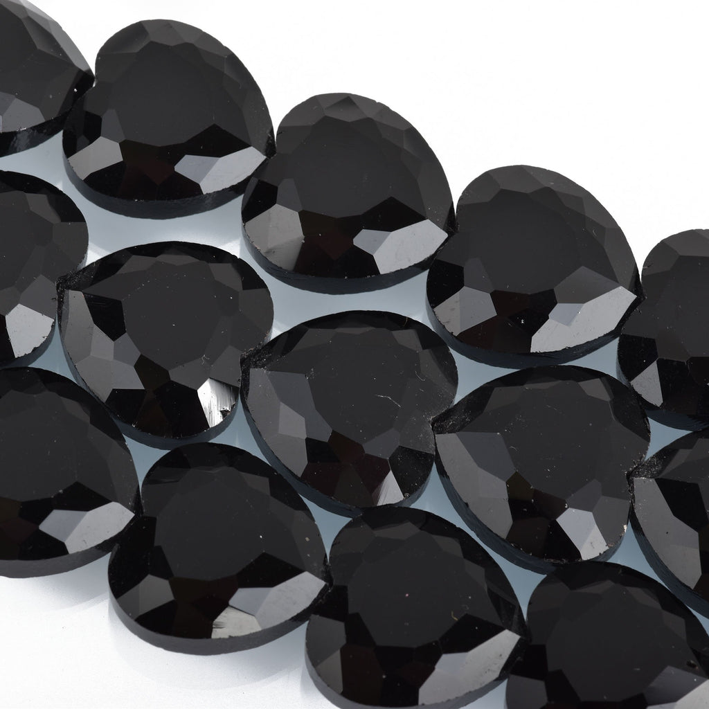 22mm Heart Beads Crystal BLACK, 14 beads, bgl1637