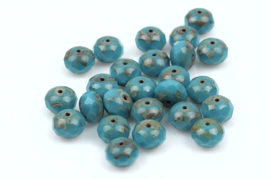 25 TURQUOISE BLUE Rondelles Czech Glass Beads, Picasso, 8mm, bgl1382
