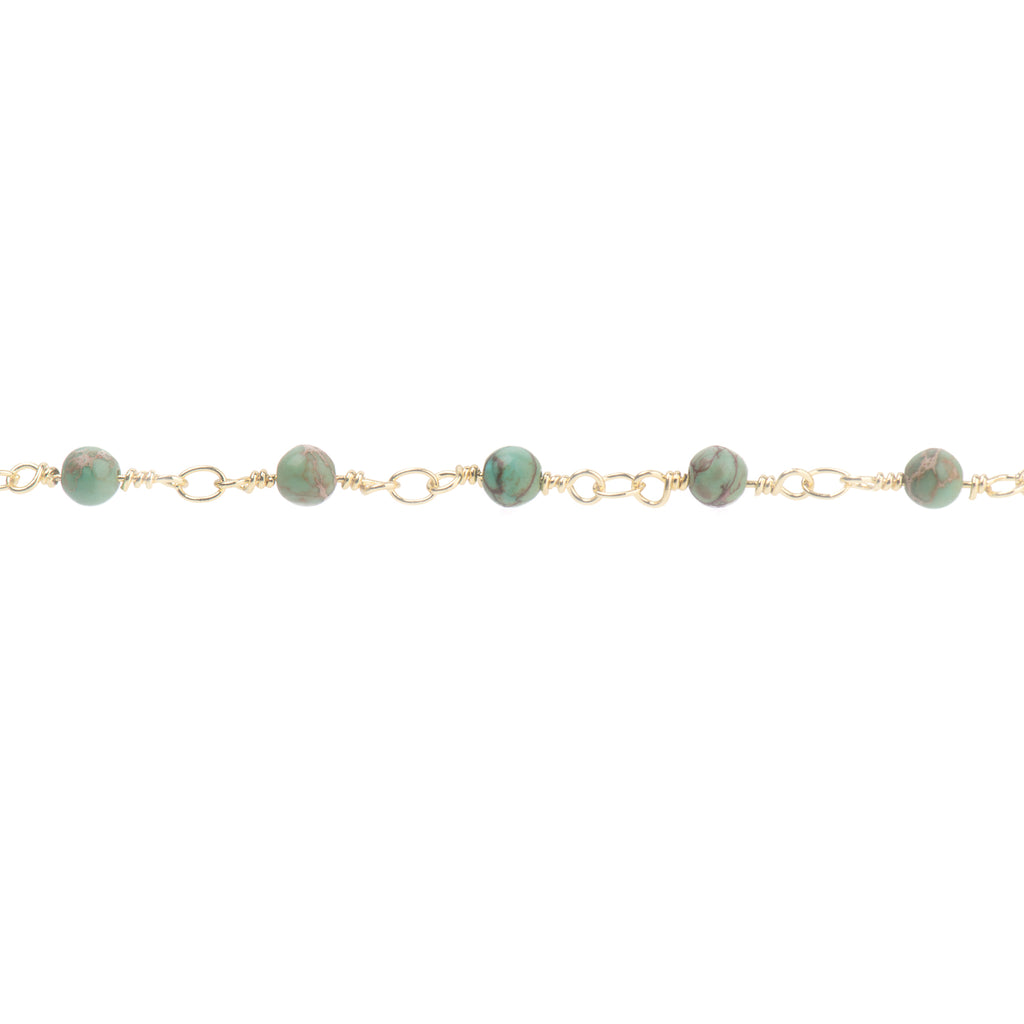 Natural gemstone Green AQUA TERRA JASPER rosary chain with 4mm beads. Each stone is hand-looped with sturdy bright gold wire.