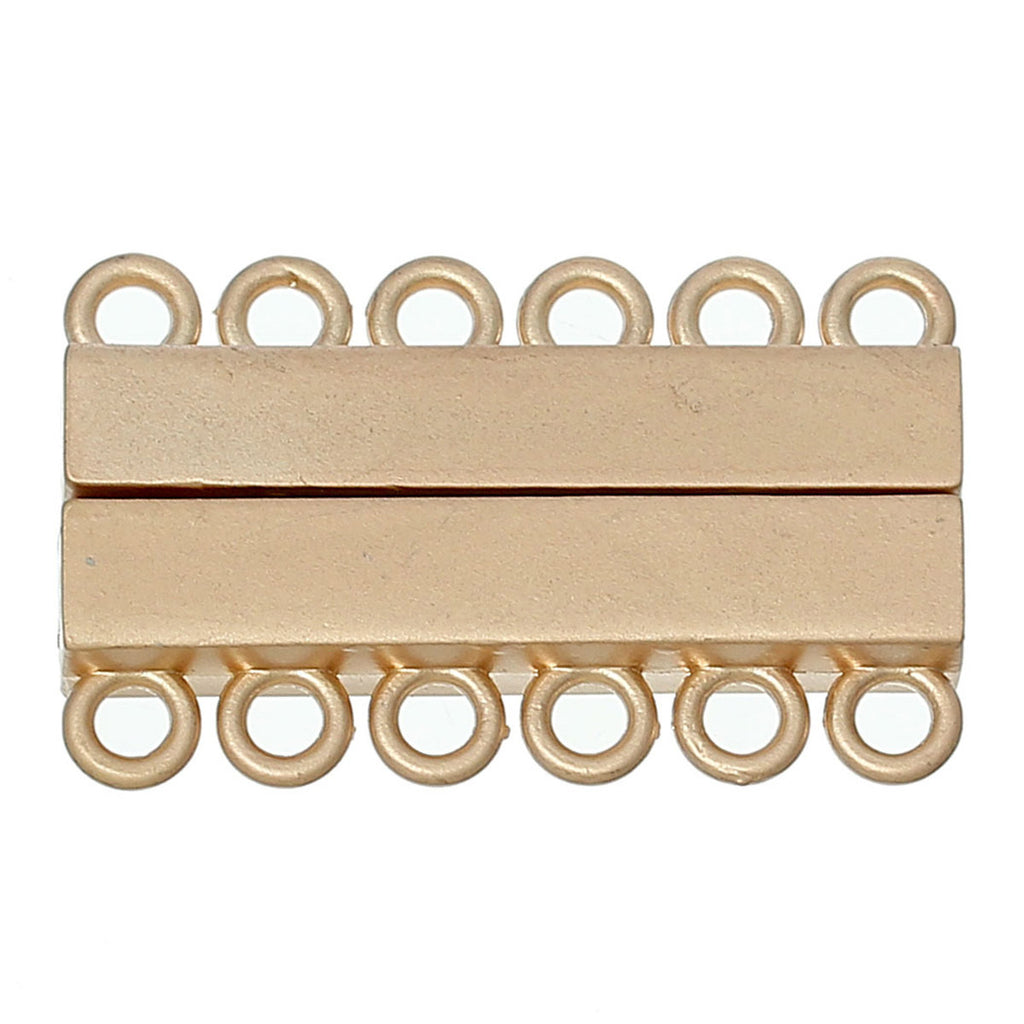 Magnetic Lock Clasps, Brass Clasps, matte light gold color, 6-strand and 12 holes