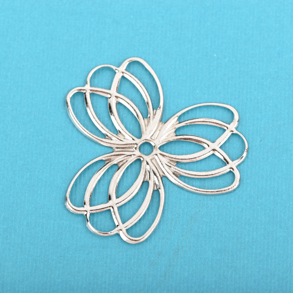 Brass Vintage Filigree Findings, bright silver plated