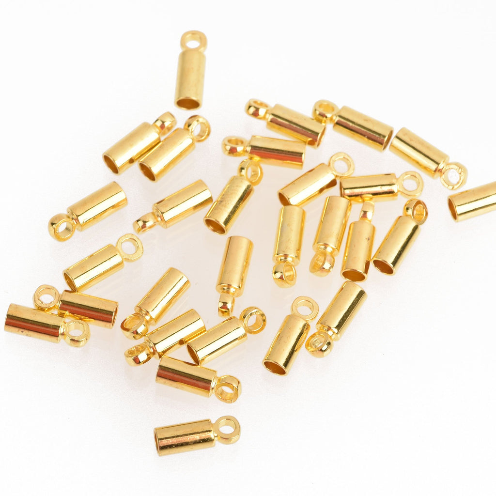 30 Gold Plated Copper End Caps for Tassel Jewelry Leather Cord End Connectors Bead Caps Fits 2.5mm cord fin0765