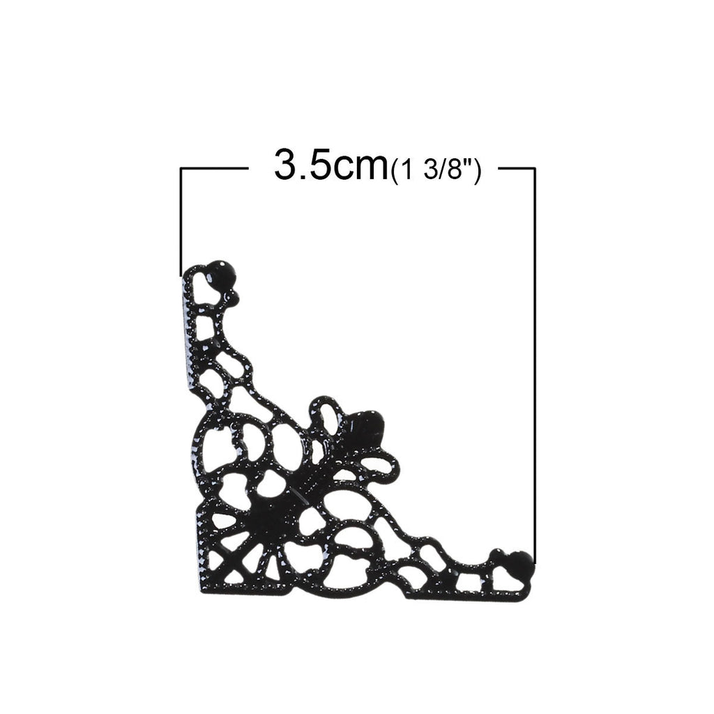 30 JET BLACK Filigree Flat Metal Triangle Findings, box frame corner embellishment, filigree wrap, 35mmx35mm, 1-3/8" fil0070